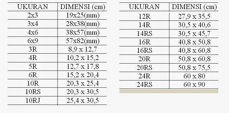 Berikut adalah beberapa ukuran foto yang paling umum digunakan, baik untuk keperluan pas foto maupun untuk keperluan lainnya: